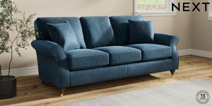 6.12.1 Buy Ashford 3 Cushion 3 Seater Sofa Cotswold Chenille Dark Blue Modern Turned Metal Cap - Mid from the Laura Ashley online shop Click here to use our website with more accessibility support, for example screen readers