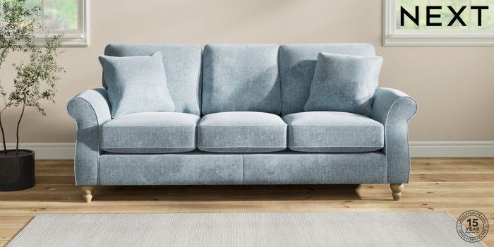 7.2.6 Buy Ashford 3 Cushion 3 Seater Sofa Plush Chenille Light Blue Low Turned - Light from the Laura Ashley online shop Click here to use our website with more accessibility support, for example screen readers