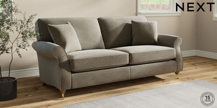 The Ashford sofa range embodies classic country style with its generous proportions and elegant scroll arms. It features ""Firmer Sit"" seat cushions, constructed with a high-density foam core and soft foam toppers. This design provides ultimate support, durability, and shape retention, while also offering a more tailored appearance. These cushions are low-maintenance and will naturally return to their shape when not in use. For extra comfort, we've included scatter cushions filled with a luxurious fibre mix. The seat cushions are also reversible, so we recommend rotating and plumping them regularly to keep them looking their best. Personalise your Ashford sofa by choosing from a vast array of fabric colors and a selection of feet options.