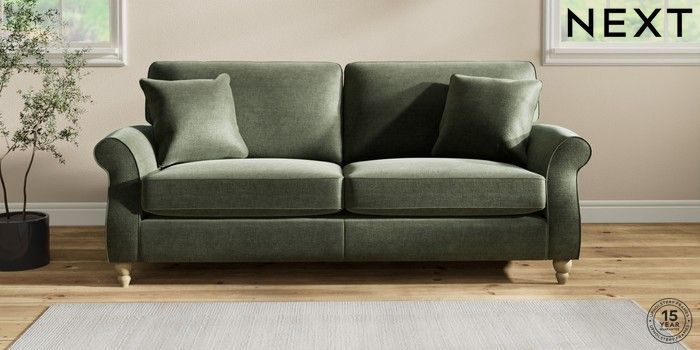 6.12.1 Buy Ashford 3 Seater Sofa Luxe Chenille Mid Green Low Turned - Light from the Laura Ashley online shop Click here to use our website with more accessibility support, for example screen readers