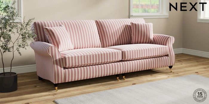 7.3.1 Buy Ashford 4 Seater Sofa Bold Chenille Stripe Dark Pink Castor - Dark from the Laura Ashley online shop