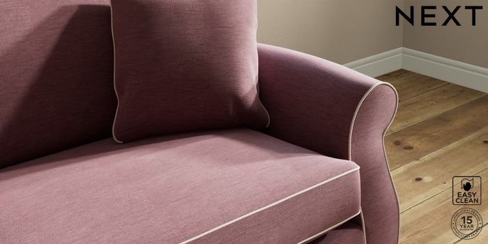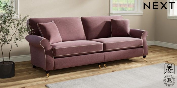 7.3.1 Buy Ashford 4 Seater Sofa Fine Chenille with Contrast Mid Mulberry Purple and Oyster Castor - Dark from the Laura Ashley online shop
