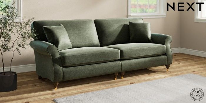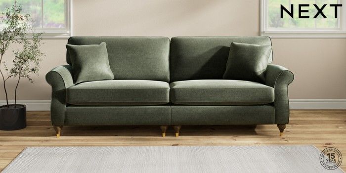 6.12.1 Buy Ashford 4 Seater Sofa Luxe Chenille Mid Green Modern Turned Metal Cap - Mid from the Laura Ashley online shop Click here to use our website with more accessibility support, for example screen readers
