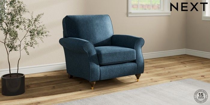 6.12.1 Buy Ashford Armchair Cotswold Chenille Dark Blue Modern Turned Metal Cap - Mid from the Laura Ashley online shop Click here to use our website with more accessibility support, for example screen readers