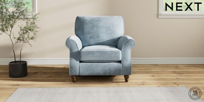 7.2.6 Buy Ashford Armchair Plush Chenille Light Blue Low Turned - Mid from the Laura Ashley online shop Click here to use our website with more accessibility support, for example screen readers
