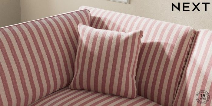 7.3.1 Buy Ashford Medium Corner Chaise - Left Hand Bold Chenille Stripe Dark Pink Castor - Light from the Laura Ashley online shop