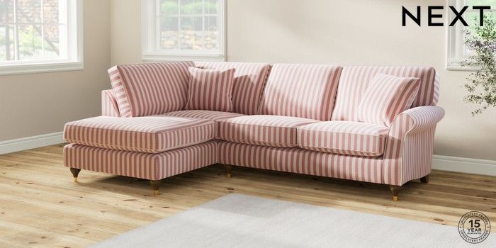 7.2.6 Buy Ashford Medium Corner Chaise - Left Hand Bold Chenille Stripe Dark Pink Modern Turned Metal Cap - Mid from the Laura Ashley online shop Click here to use our website with more accessibility support, for example screen readers