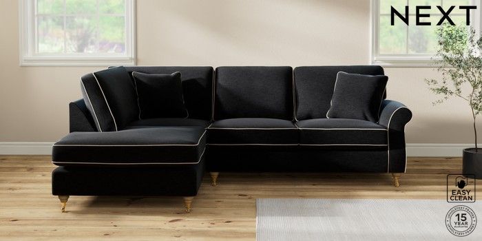 7.3.1 Buy Ashford Medium Corner Chaise - Left Hand Fine Chenille with Contrast Black and Oyster Castor - Light from the Laura Ashley online shop Click here to use our website with more accessibility support, for example screen readers