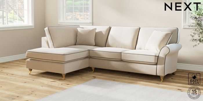 7.3.1 Buy Ashford Medium Corner Chaise - Left Hand Fine Chenille with Contrast Oyster and Black Castor - Light from the Laura Ashley online shop Click here to use our website with more accessibility support, for example screen readers
