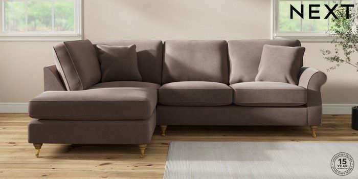 6.12.1 Buy Ashford Medium Corner Chaise - Left Hand Luxe Chenille Mink Brown Castor - Light from the Laura Ashley online shop Click here to use our website with more accessibility support, for example screen readers