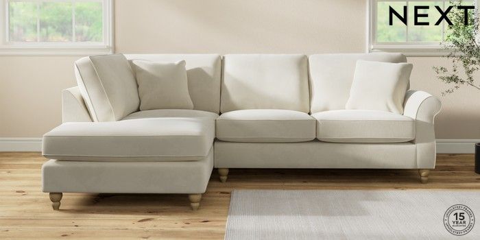 7.0.3 Buy Ashford Medium Corner Chaise - Left Hand Luxe Chenille Oyster Low Turned - Light from the Laura Ashley online shop Click here to use our website with more accessibility support, for example screen readers