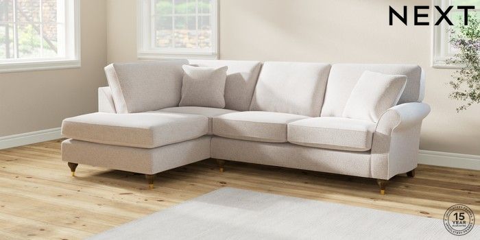 7.2.6 Buy Ashford Medium Corner Chaise - Left Hand Multi Weave Oyster Modern Turned Metal Cap - Mid from the Laura Ashley online shop Click here to use our website with more accessibility support, for example screen readers