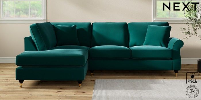 6.12.1 Buy Ashford Medium Corner Chaise - Left Hand Plush Velvet Easy Clean Juniper Green Castor - Dark from the Laura Ashley online shop Click here to use our website with more accessibility support, for example screen readers