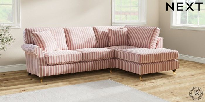 7.2.6 Buy Ashford Medium Corner Chaise - Right Hand Bold Chenille Stripe Dark Pink Castor - Mid from the Laura Ashley online shop Click here to use our website with more accessibility support, for example screen readers