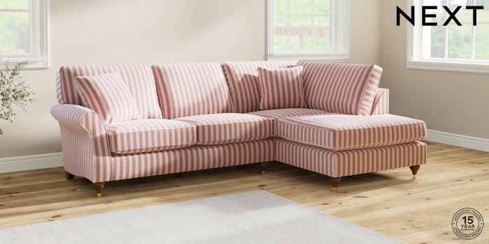 7.2.6 Buy Ashford Medium Corner Chaise - Right Hand Bold Chenille Stripe Dark Pink Modern Turned Metal Cap - Mid from the Laura Ashley online shop Click here to use our website with more accessibility support, for example screen readers