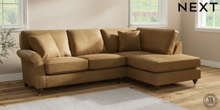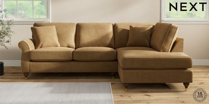 6.12.1 Buy Ashford Medium Corner Chaise - Right Hand Luxe Chenille Honey Yellow Modern Turned Metal Cap - Mid from the Laura Ashley online shop Click here to use our website with more accessibility support, for example screen readers