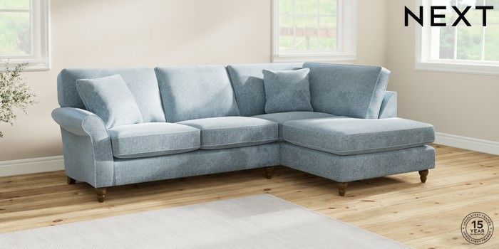 7.2.6 Buy Ashford Medium Corner Chaise - Right Hand Plush Chenille Light Blue Low Turned - Mid from the Laura Ashley online shop Click here to use our website with more accessibility support, for example screen readers