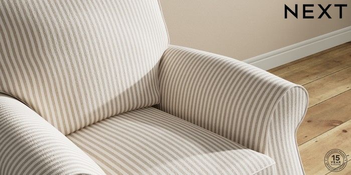 6.12.1 Buy Ashford Small Armchair Chenille Stripe Natural Modern Turned Metal Cap - Mid from the Laura Ashley online shop Click here to use our website with more accessibility support, for example screen readers