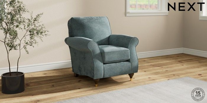6.12.13 Buy Ashford Small Armchair Chunky Chenille Light Teal Green Modern Turned Metal Cap - Mid from the Laura Ashley online shop Click here to use our website with more accessibility support, for example screen readers