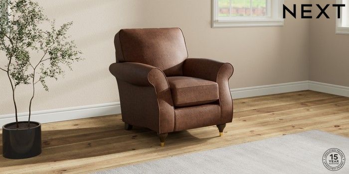 6.12.1 Buy Ashford Small Armchair Monza Faux Leather Easy Clean Chestnut Brown Modern Turned Metal Cap - Mid from the Laura Ashley online shop Click here to use our website with more accessibility support, for example screen readers
