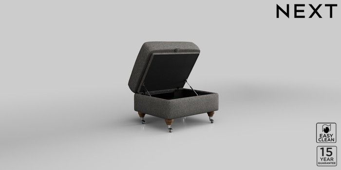 6.12.1 Buy Ashford Storage Footstool Tweedy Blend Easy Clean Dark Grey Low Turned - Light from the Laura Ashley online shop Click here to use our website with more accessibility support, for example screen readers