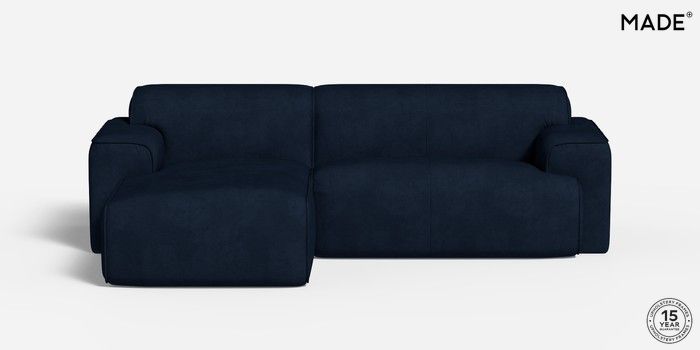 6.12.1 Buy Avalon by Made Medium Sofa Chaise - Right Hand Matt Velvet Easy Clean Dark Navy Blue Glide from the Laura Ashley online shop Click here to use our website with more accessibility support, for example screen readers