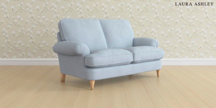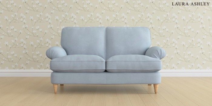 6.12.1 Buy Beaumaris by Laura Ashley 2 Seater Sofa Ailsworth Newport Blue Low Turned - Light Oak from the Laura Ashley online shop Click here to use our website with more accessibility support, for example screen readers
