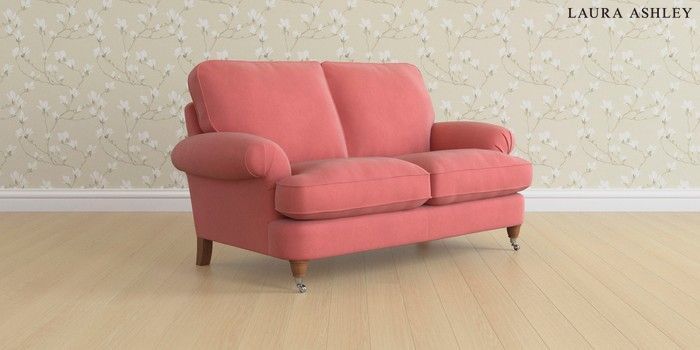 6.12.13 Buy Beaumaris by Laura Ashley 2 Seater Sofa Ailsworth Old Rose Pink Low Chrome Castor - Teak from the Laura Ashley online shop Click here to use our website with more accessibility support, for example screen readers