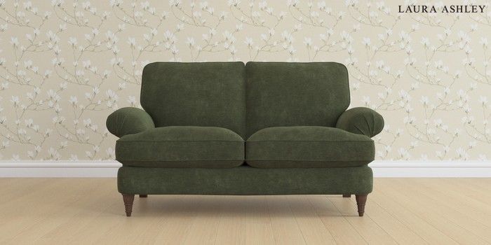 6.12.13 Buy Beaumaris by Laura Ashley 2 Seater Sofa Alwyn Velvet Ivy Green Low Turned - Chestnut from the Laura Ashley online shop Click here to use our website with more accessibility support, for example screen readers