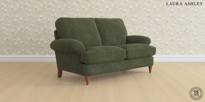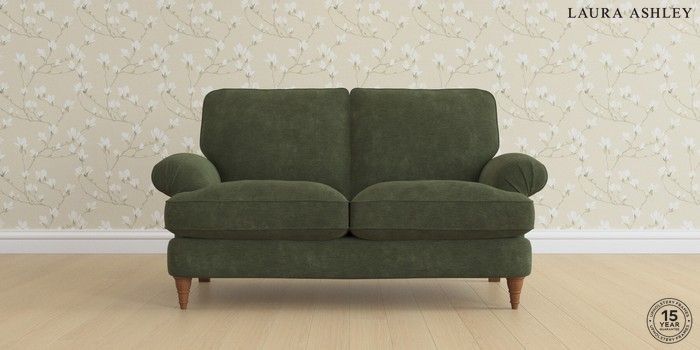 6.12.1 Buy Beaumaris by Laura Ashley 2 Seater Sofa Alwyn Velvet Ivy Green Low Turned - Teak from the Laura Ashley online shop Click here to use our website with more accessibility support, for example screen readers