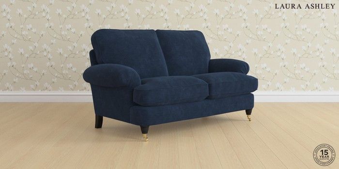 6.12.1 Buy Beaumaris by Laura Ashley 2 Seater Sofa Alwyn Velvet Midnight Navy Low Brass Castor - Black from the Laura Ashley online shop Click here to use our website with more accessibility support, for example screen readers