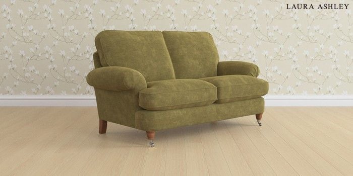 6.12.13 Buy Beaumaris by Laura Ashley 2 Seater Sofa Alwyn Velvet Olive Green Low Chrome Castor - Teak from the Laura Ashley online shop Click here to use our website with more accessibility support, for example screen readers