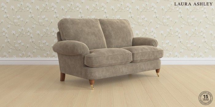 6.12.1 Buy Beaumaris by Laura Ashley 2 Seater Sofa Alwyn Velvet Truffle Natural Low Brass Castor - Teak from the Laura Ashley online shop Click here to use our website with more accessibility support, for example screen readers