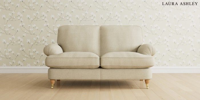 6.12.1 Buy Beaumaris by Laura Ashley 2 Seater Sofa Anneliese Natural Low Brass Castor - Light Oak from the Laura Ashley online shop Click here to use our website with more accessibility support, for example screen readers