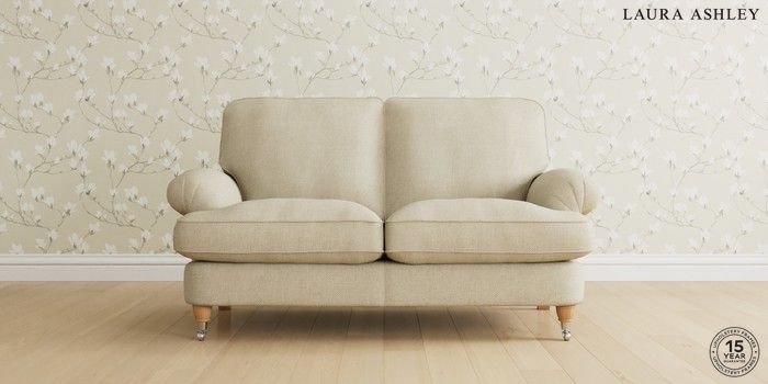 6.12.1 Buy Beaumaris by Laura Ashley 2 Seater Sofa Anneliese Natural Low Chrome Castor - Light Oak from the Laura Ashley online shop Click here to use our website with more accessibility support, for example screen readers