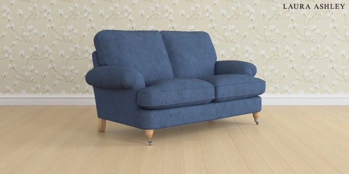 6.12.1 Buy Beaumaris by Laura Ashley 2 Seater Sofa Bainton Midnight Navy Low Chrome Castor - Light Oak from the Laura Ashley online shop Click here to use our website with more accessibility support, for example screen readers