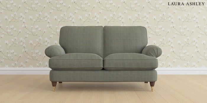 6.12.13 Buy Beaumaris by Laura Ashley 2 Seater Sofa Birchgrove Check Olive Green Low Brass Castor - Chestnut from the Laura Ashley online shop Click here to use our website with more accessibility support, for example screen readers