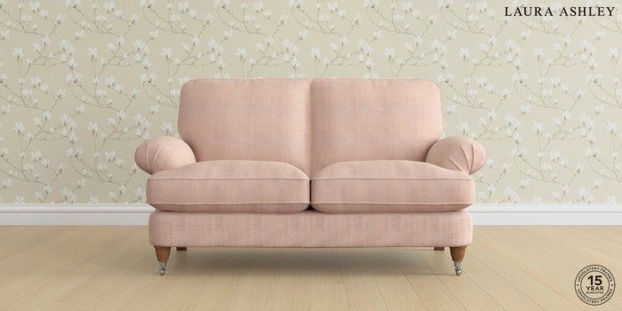 6.12.13 Buy Beaumaris by Laura Ashley 2 Seater Sofa Edwin Chenille Blush Pink Low Chrome Castor - Teak from the Laura Ashley online shop Click here to use our website with more accessibility support, for example screen readers