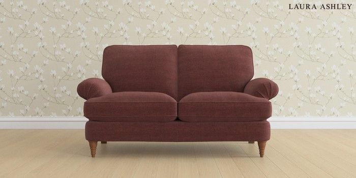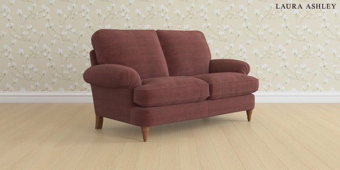 6.12.13 Buy Beaumaris by Laura Ashley 2 Seater Sofa Edwin Chenille Burgundy Red Low Turned - Teak from the Laura Ashley online shop Click here to use our website with more accessibility support, for example screen readers
