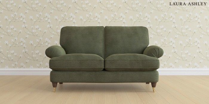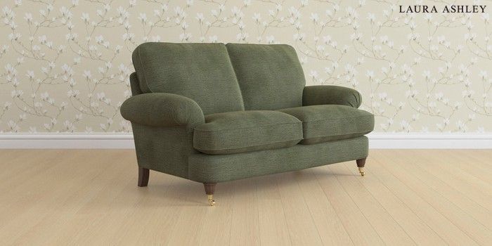6.12.1 Buy Beaumaris by Laura Ashley 2 Seater Sofa Edwin Chenille Hedgerow Green Low Brass Castor - Chestnut from the Laura Ashley online shop Click here to use our website with more accessibility support, for example screen readers