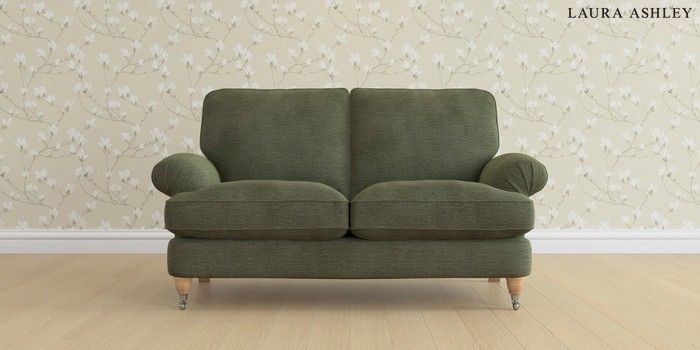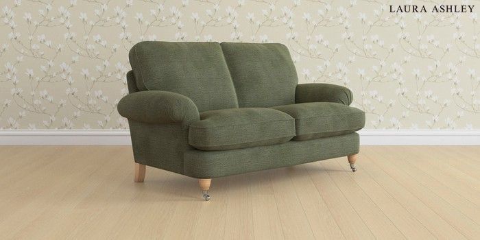 6.12.13 Buy Beaumaris by Laura Ashley 2 Seater Sofa Edwin Chenille Hedgerow Green Low Chrome Castor - Light Oak from the Laura Ashley online shop Click here to use our website with more accessibility support, for example screen readers
