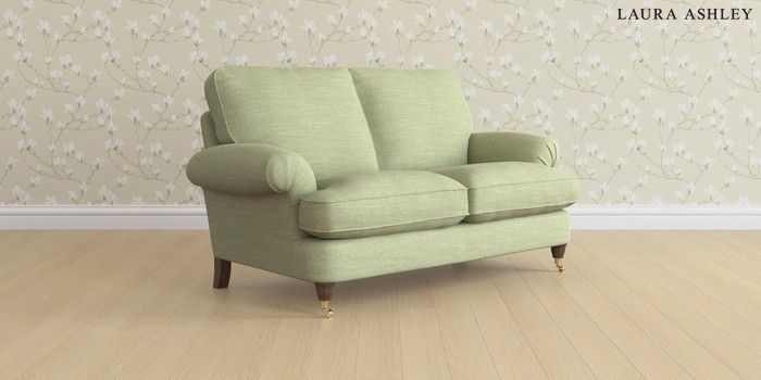 6.12.1 Buy Beaumaris by Laura Ashley 2 Seater Sofa Kinsham Hedgerow Green Low Brass Castor - Chestnut from the Laura Ashley online shop Click here to use our website with more accessibility support, for example screen readers