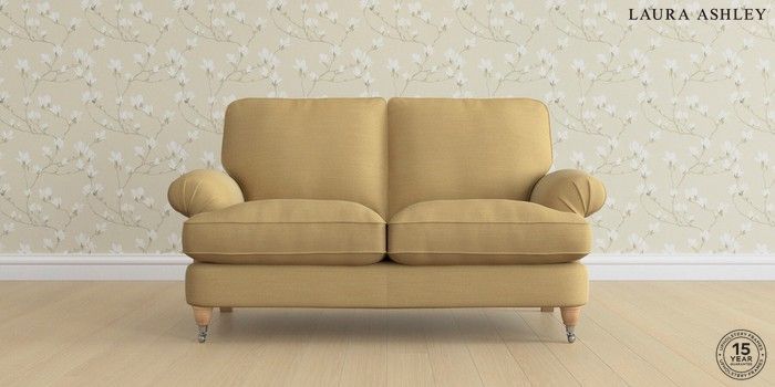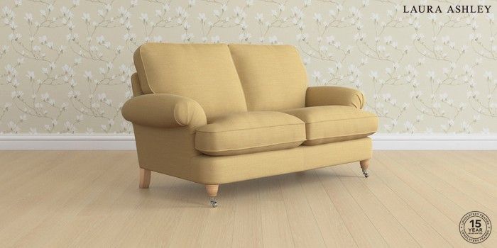 6.12.1 Buy Beaumaris by Laura Ashley 2 Seater Sofa Kinsham Ochre Yellow Low Chrome Castor - Light Oak from the Laura Ashley online shop Click here to use our website with more accessibility support, for example screen readers