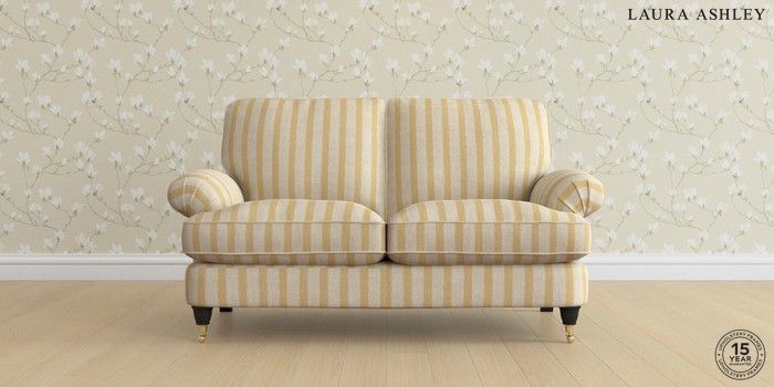 7.0.3 Buy Beaumaris by Laura Ashley 2 Seater Sofa Kinsham Stripe Ochre Yellow Low Brass Castor - Black from the Laura Ashley online shop Click here to use our website with more accessibility support, for example screen readers