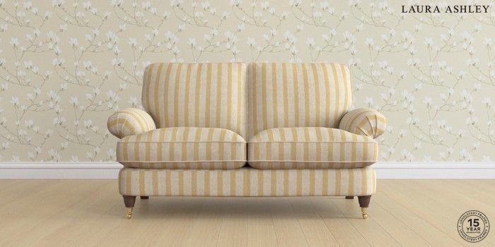 7.0.3 Buy Beaumaris by Laura Ashley 2 Seater Sofa Kinsham Stripe Ochre Yellow Low Brass Castor - Chestnut from the Laura Ashley online shop Click here to use our website with more accessibility support, for example screen readers