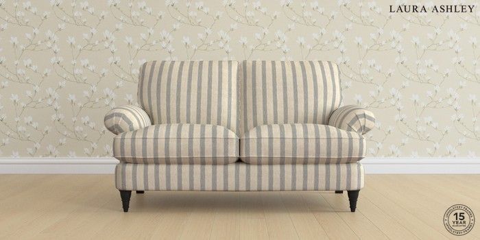 6.12.1 Buy Beaumaris by Laura Ashley 2 Seater Sofa Kinsham Stripe Seaspray Blue Low Turned - Black from the Laura Ashley online shop Click here to use our website with more accessibility support, for example screen readers