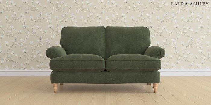 6.12.1 Buy Beaumaris by Laura Ashley 2 Seater Sofa Lundar Chenille Ivy Green Low Turned - Light Oak from the Laura Ashley online shop Click here to use our website with more accessibility support, for example screen readers