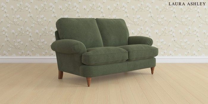 6.12.1 Buy Beaumaris by Laura Ashley 2 Seater Sofa Lundar Chenille Ivy Green Low Turned - Teak from the Laura Ashley online shop Click here to use our website with more accessibility support, for example screen readers