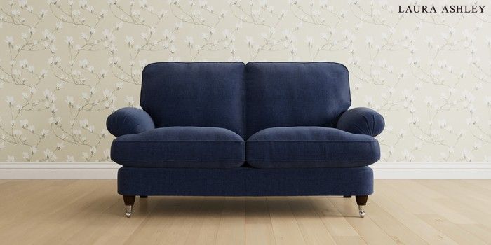 6.12.1 Buy Beaumaris by Laura Ashley 2 Seater Sofa Nantmor Midnight Navy Low Chrome Castor - Chestnut from the Laura Ashley online shop Click here to use our website with more accessibility support, for example screen readers