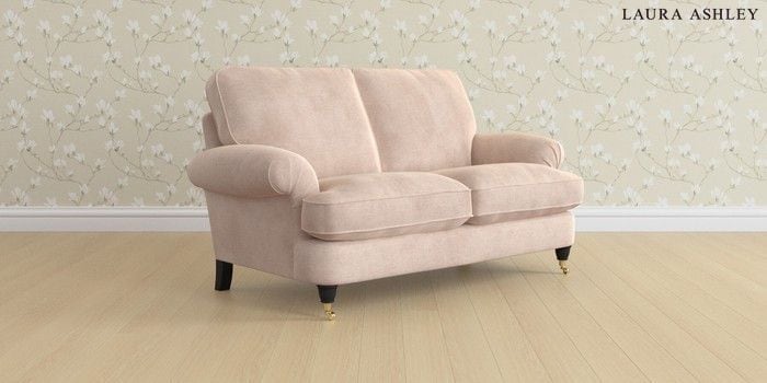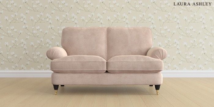 6.12.1 Buy Beaumaris by Laura Ashley 2 Seater Sofa Orla Chalk Pink Low Brass Castor - Black from the Laura Ashley online shop Click here to use our website with more accessibility support, for example screen readers